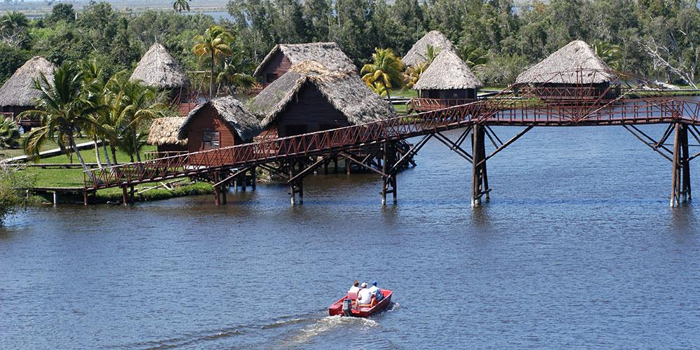 Visita facoltativa a pagamento alla ricostruzione di un tipico villaggio che alle origini di Cuba fù abitato dagli Indios Tainos, costruito su palafitte che si raggiungono dopo una breve navigazione nella laguna oppure a scelta sosta per bagno alle piscine naturali di Caleta Buena.(entrata a pagamento)